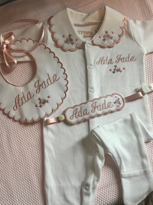 Personalised Rose embroidered 3 piece set