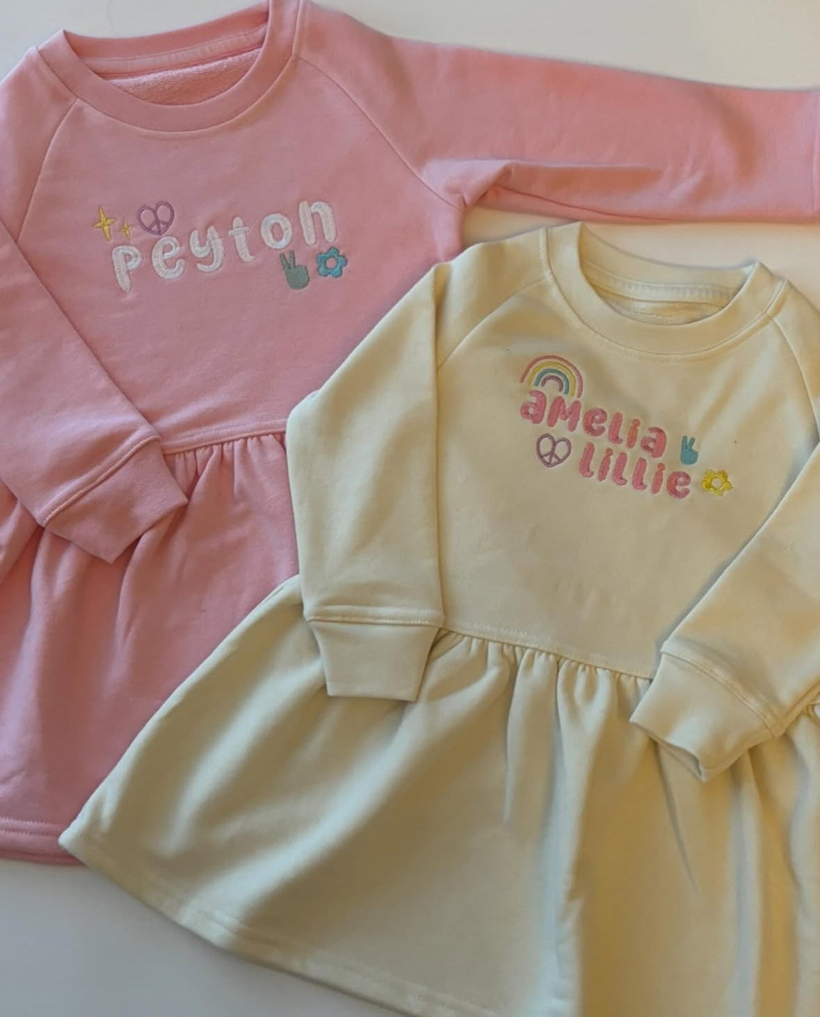 This peplum sweater dress features personalized embroidery, combining retro fashion with modern design. Its unique style is perfect for making a statement while staying cozy and comfortable. Add your own touch with customized stitching.