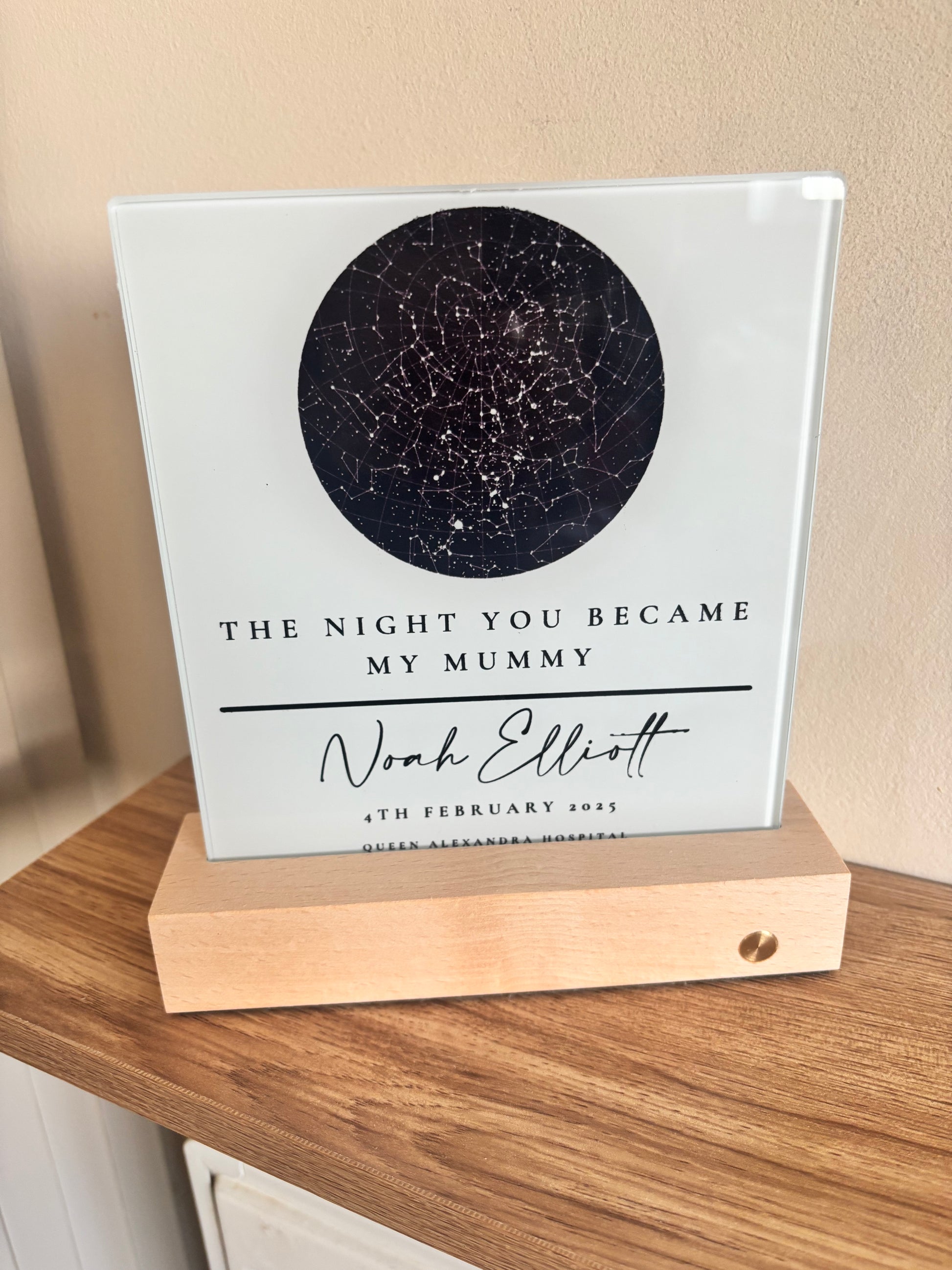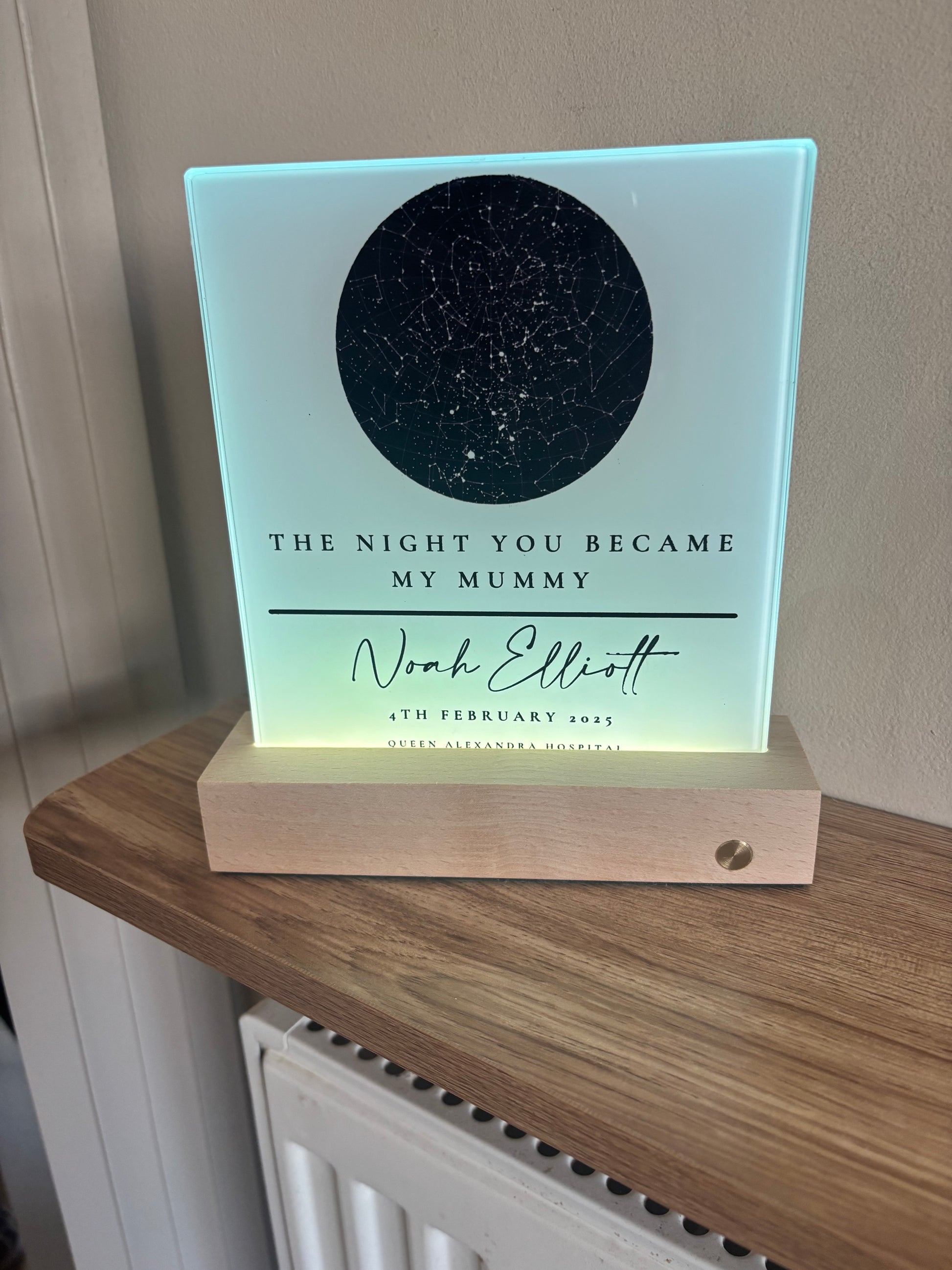Illuminate any space with our Glass LED Photo featuring a mesmerizing glow and captivating birthday design. The built-in rechargeable feature offers up to 5 hours of illumination, providing both portability and flexibility. Crafted with a solid wood base and full-surface printing, this panel is a natural, sophisticated display choice.