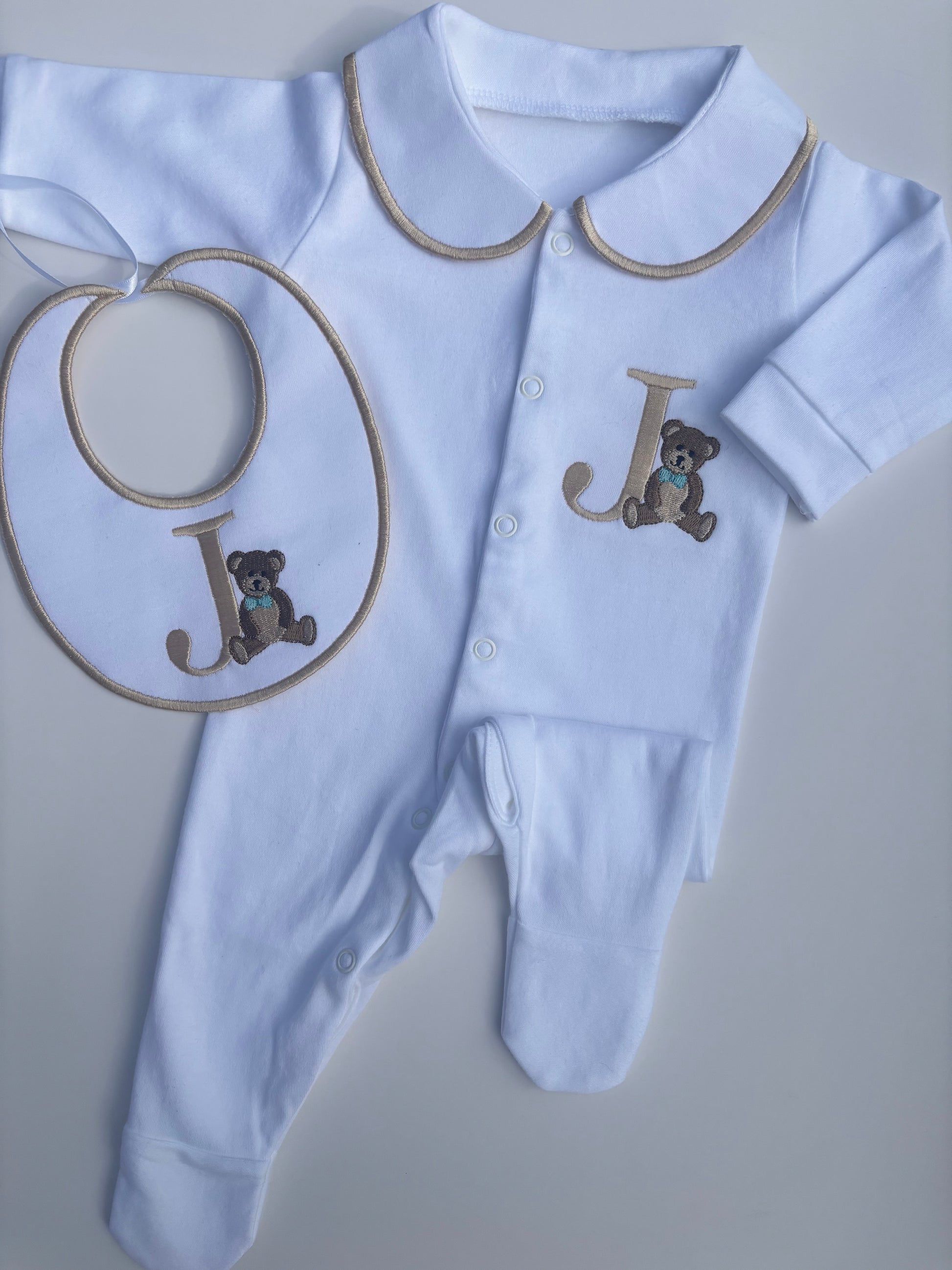 This personalised 3 piece set is perfect for newborns. The set includes a baby grow, bib, and dummy clip, all with beautiful embroidery. The perfect gift for any new parent, this set combines style and functionality. Keep your baby looking cute and comfortable with this must-have set.