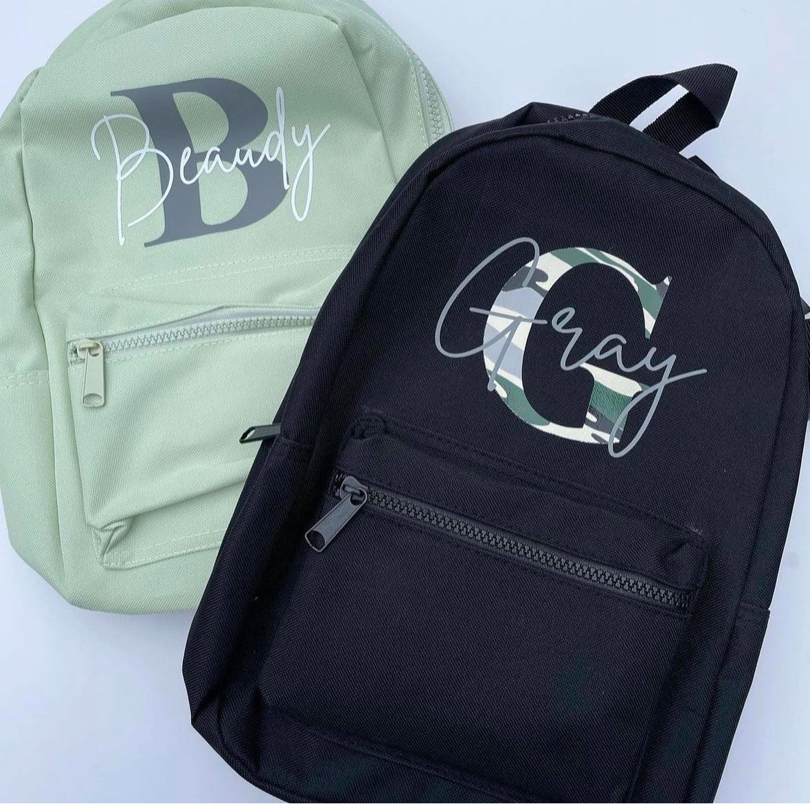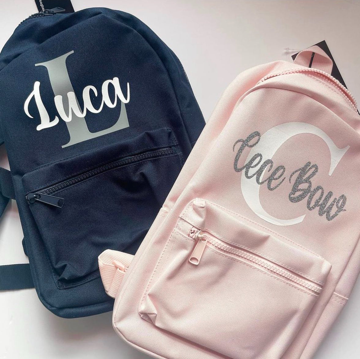 "Expertly crafted Personalised embroidered backpack. Padded back panel, adjustable shoulder straps, and grab handle provide maximum comfort. With a spacious main zip compartment and front zip pocket, this backpack is perfect for daily use, with a tear out label for personalization. 7 litre capacity allows for ample storage. Choose from 2 fonts for personalised embroidery."