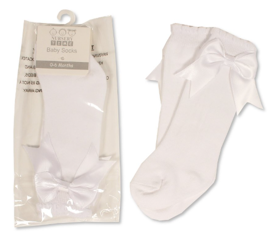 Expertly crafted for babies and toddlers, these White Satin Bow Knee Socks feature a charming scallop trim and a large satin bow applique. Perfect for keeping little feet stylish and comfortable, these knee high socks are the perfect addition to any outfit.